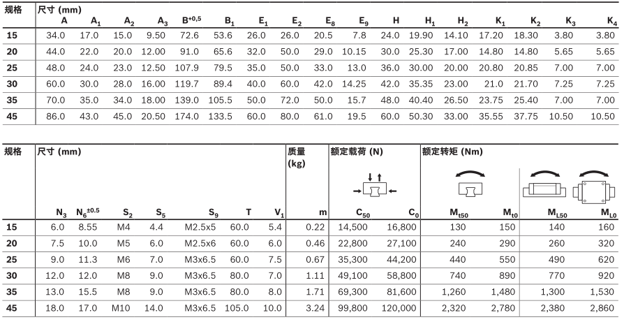 Bosch Rexroth 力士乐滚珠导轨导向系统 BSCL经济型系列SLS – 窄型 长 标准高 R205D42320